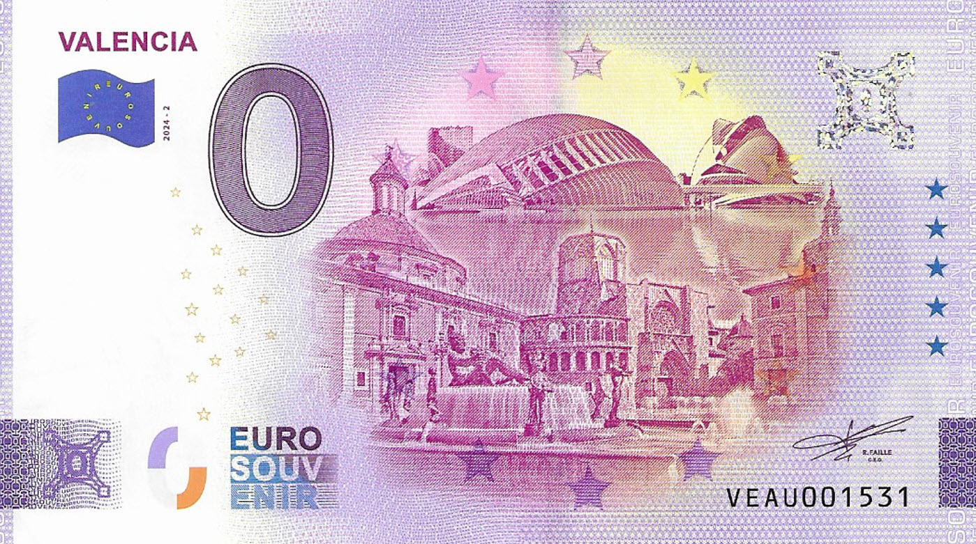 The Valencia 0 Euro Note is a 0 Euro Note dedicated to Valencia, which is the capital of the province and autonomous community of the same name in Spain. It is located on the banks of the Turia, on the east coast of the Iberian Peninsula on the Mediterranean Sea. It is the third-most populated municipality in the country, with 825,948 inhabitants. The urban area of Valencia has 1.5 million people while the metropolitan region has 2.5 million.